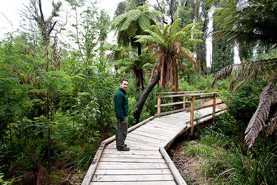 Last week I spent a couple of days in Marysville with Parks Victoria and the Department of Sustainability and Environment (DSE). I was fortunate to have been shown around the new trail infrastructure by Simon Gough, the Bushfire Recovery Project Co-ordinator for DSE in Marysville, and by Mark Krause, the Assistant Ranger in Charge for the Yarra Ranges National Park. It was a fascinating and very informative tour and I learned a lot about the difficulty in repairing, designing and building walking and cycling trails. DSE and Parks Victoria have done an enormous amount of work since the fires and the good news is that most of the trails are now open. Those that aren’t are perhaps only a couple of months away. Bushwalking always been a major attraction for visitors to Marysville and the reopening of these trails will be seen as an important step towards recovery.