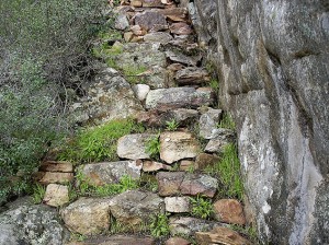 Arapiles has had a great last year and a half. Of course we are heading into winter now and at this time of the year, everything usually is starting to look green. What was amazing to see though was the greenness that continued throughout summer this year. Granted the floods brought a huge amount of water to the area but before that Arapiles and its surrounds were still getting a regular fall. In previous years, throughout the drought, the mount had lost a lot of older trees. They held on for as long as they could, but there were many that were stressed to the point of no return. With the rains, came the opportunity for new vegetation to get a good watering in. CliffCare and Friends of Mt Arapiles revegetated a number of areas with plants supplied by Iestyn Hocking and Heather Phillips who collect seed and grow indigenous plants and grasses from the area. Many of these plants are now thriving and can be seen along the lower part of the Pharos Tourist track. As the old pines are dying in the Pines campground at Mt Arapiles, they are being removed. Rather than replant with the original Radiata pines, native callitris pine seedlings were planted in 2008. These are all healthy young plants now. To protect them further as they grow, stakes and chicken wire were placed around them to ensure that they can stand up to the many campers that the campground sees.