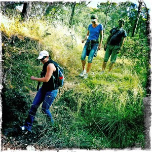 Karen and I joined a few friends (Greg, Michelle and Marriot) on Saturday to walk the lovely Tarilta Creek Gorge just south of Mt Franklin in the Upper Loddon State Forest. I was keen to GPS the circuit for our forthcoming Goldfields guide and see what effect the recent bushfire (early January 2012) had on the park. The fire had started on nearby private property as a grassfire and had burned through some of the forest along Sawpit Gully Road. We left the car (parked on Porcupine Ridge Road) at about 2pm, which would normally be quite a late start, but on a daylight-saving mid-summers day it was going to be no problem at all. A southerly breeze kept the temperature down and there was barely a cloud in the sky.