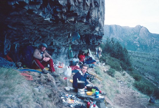 The bivvy cave at the foot of Mt Geryon. This wild spot has long been used as a climbing base for the big adventure routes on the 350 metre-high East Face of Mt Geryon. It is also conveniently situated not far from the Acropolis North Face, our main objective.