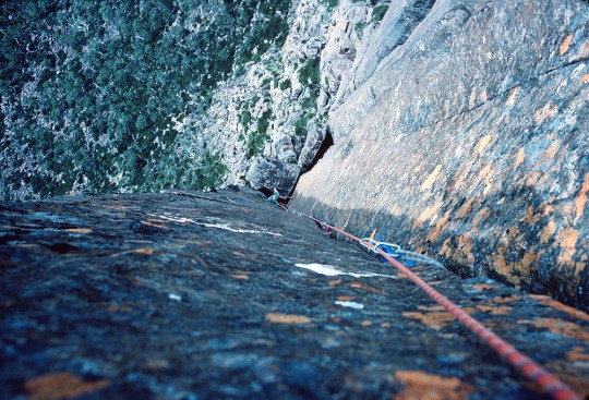 Russ Clune seconding me up the first ascent of Astro Boy (24). This incredible long jamming corner was my personal highlight of the trip. The climbing was sustained, clean and technically perfect. It reminded me of some of those long crack pitches in Yosemite Valley and was named in recognition of the big stemming Enduro Corner on Astroman.