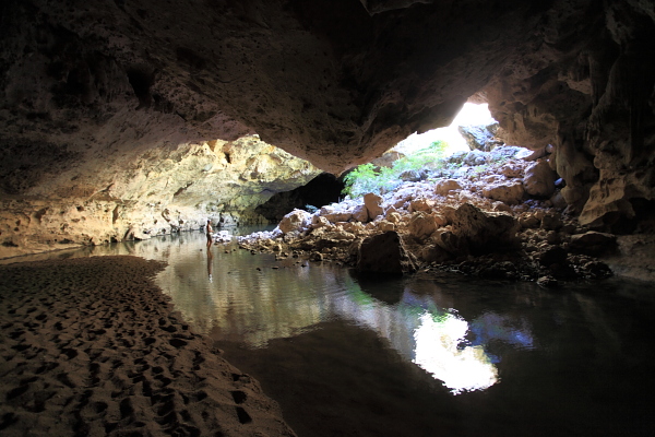 Early last week Karen and I called into Tunnel Creek National Park after spending a week driving across the Gibb River Road. This really interesting location is in the southern part of the Napier Range, a line of prominent limestone peaks that create a natural barrier across the otherwise flat plains. A creek has created a fantastic cave which burrows 750m through the range. You are allowed to walk through the cave but you will need a headtorch and do a bit of wading. We spotted loads of bats inside as well as native fish and a two freshwater crocodiles. Definitely a place to put on your must see list. There would be some good short walks in the area but there is nothing official as yet. Tunnel Creek National Park is part of the Devonian Reef Conservation Park on the Leopold Downs Road in the southern Kimberley region of Western Australia. No problems accessing the park in a 2WD.
