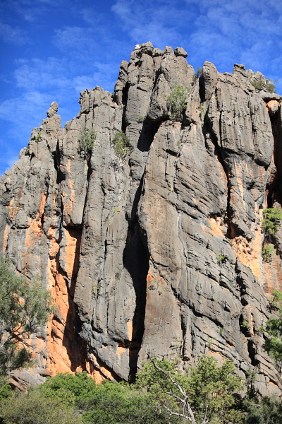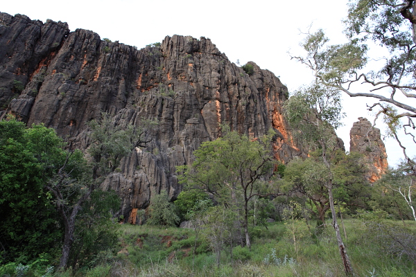 From a climbing point of view Windjana Gorge is something else. I’ve only ever seen a handful of similar high-quality compact climbing locations around the world. These would have to include Victoria’s Arapiles, Verdon Gorge (France) and the limestone cliffs of Phra Nang (Thailand). The walls inside the gorge (and outside it for that matter) stretch for many kilometres and as far as I could tell most of the rock is comprised of perfect limestone of up to three pitches. The rock architecture is also really impressive and there are possibilities for literally thousands of climbs. I’m not sure how Western Australia’s Department of Environment and Conservation would view rockclimbing in the gorge (especially if it led to an influx of hundreds of climbers visiting from all over the world). Of course Windjana Gorge is a bloody long way away from anywhere. The small town of Derby is about 150km to the west and Broome is about double that. The gorge is easily accessible from the Leopold Downs Road in the Southern Kimberley. As a walker I really recommend that you check out this amazing place and definitely do the Gorge Walk. As a climber I was blown away at the potential for this to become a world-class climbing area. It’s unlikely that it will ever happen but at least I can dream.
